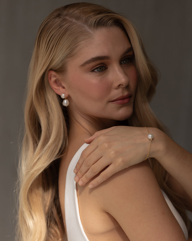 Many of our pieces are available in silver, gold, or rose gold plating, allowing you to perfectly match your existing jewellery or wedding theme. We believe your bridal jewellery should be as unique as your love story.