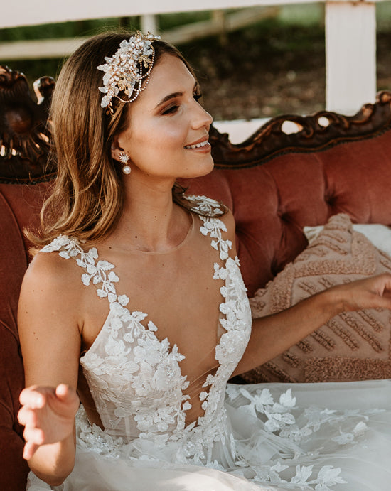 Bridal headpiece - gold leaf and lace designer headband - Amelia by Kezani - BUY or HIRE