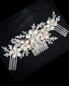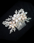 Bridal headpiece - pearl floral and leaf comb - Claudia by Kezani - BUY or HIRE