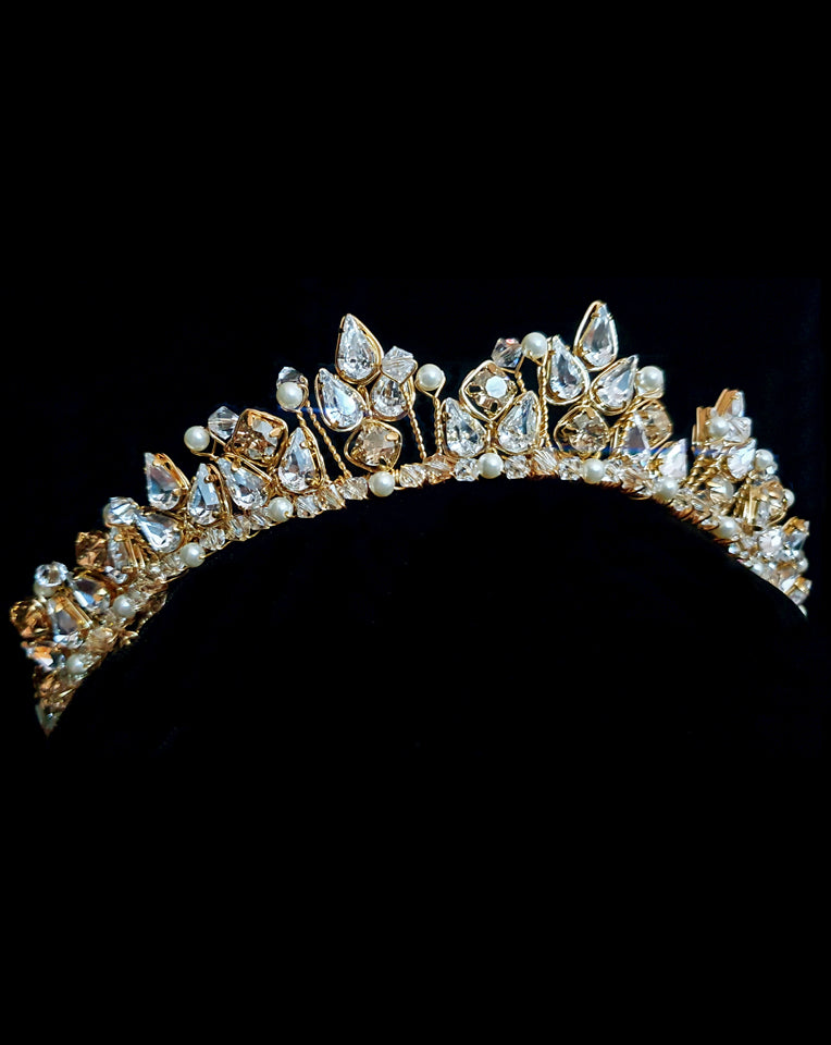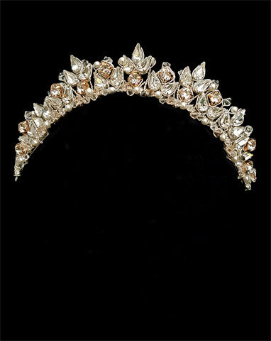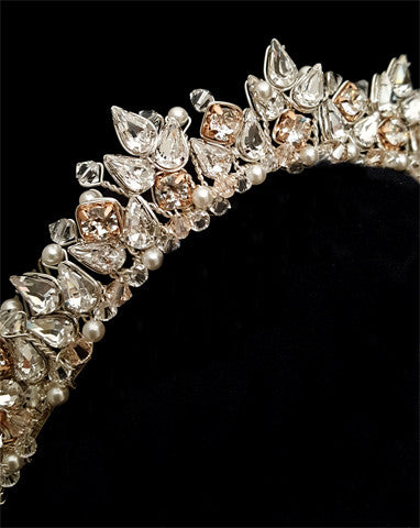 Wedding crown - a gorgeous dainty crystal crown with so much detail. Little pointy crystals mixed with a touch of rose gold cased crystals and silk bicones on the base. Sparkly and feminine and makes you feel like an ethereal princess.