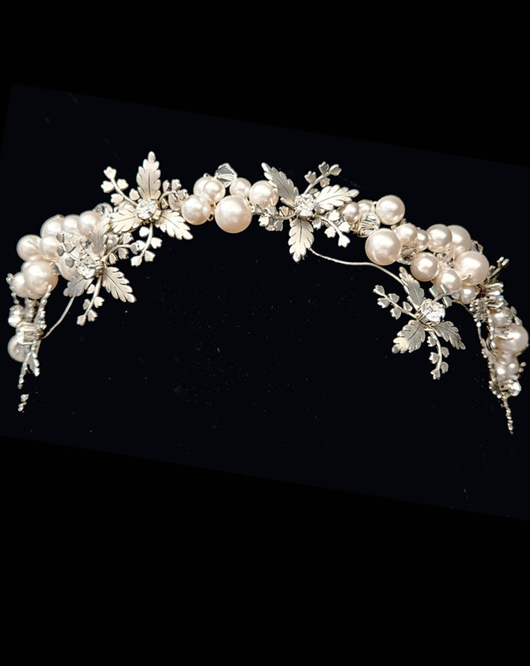 This pearl and floral headpiece can be customised in other colour tones to suits your gown, silver, rose golds with blush or vintage gold tones.