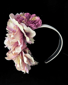 The Rosalie is very easy to wear. Two beautiful wild roses are featured in the most divine tones of champagne nude and mulberry pink on a nude satin headband.