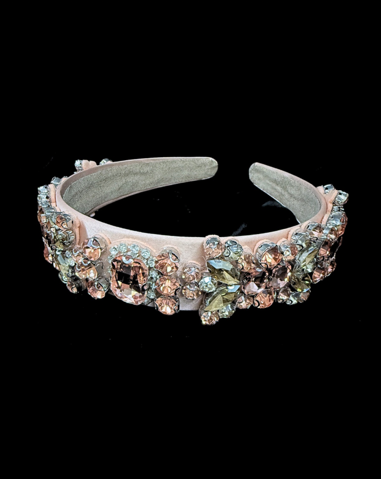 Race day fascinators and fashion jewelled headbands - The Yasmine ll jewelled band in sky blue satin colour. This is a gorgeous beaded satin headband. Jewels are in silver plate casings with clear and blue shades.