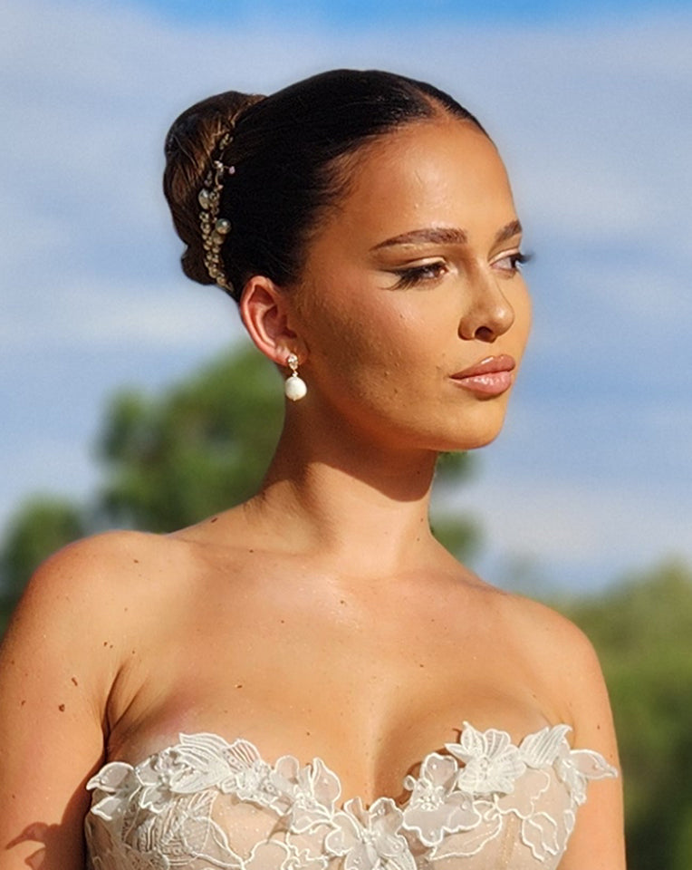 • Classic Updo - Showcases earrings beautifully; from small to statement