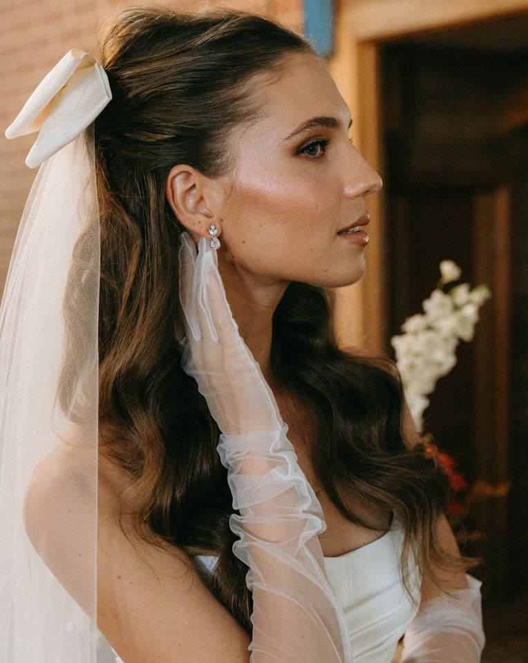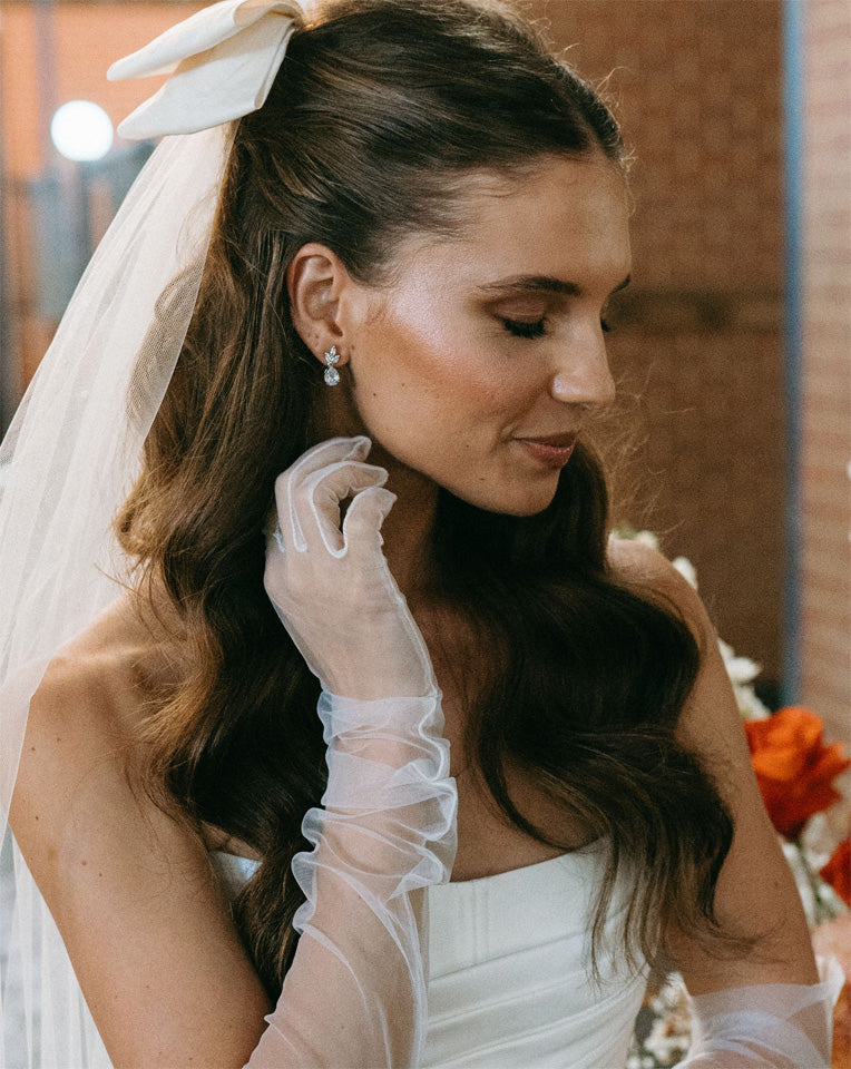 Headpiece as Your Star? Choose subtle, elegant earrings that complement rather than compete. Think delicate studs or small drops that add sparkle without overwhelming.