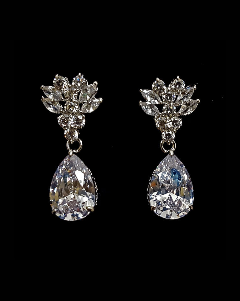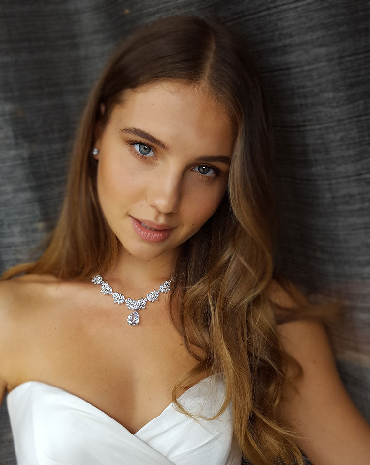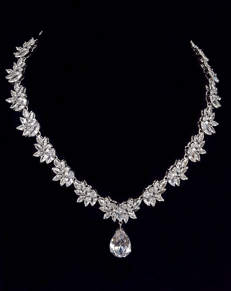 wedding necklace - crystal necklace with pear drop and earrings set - Mina - Johnny B at Kezani