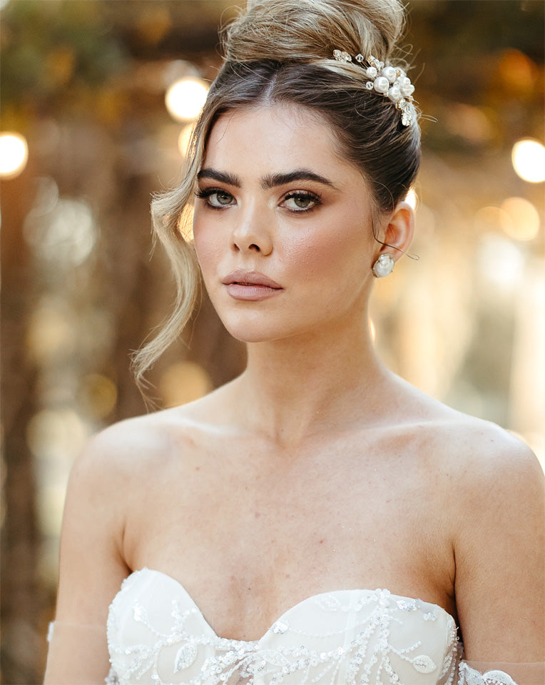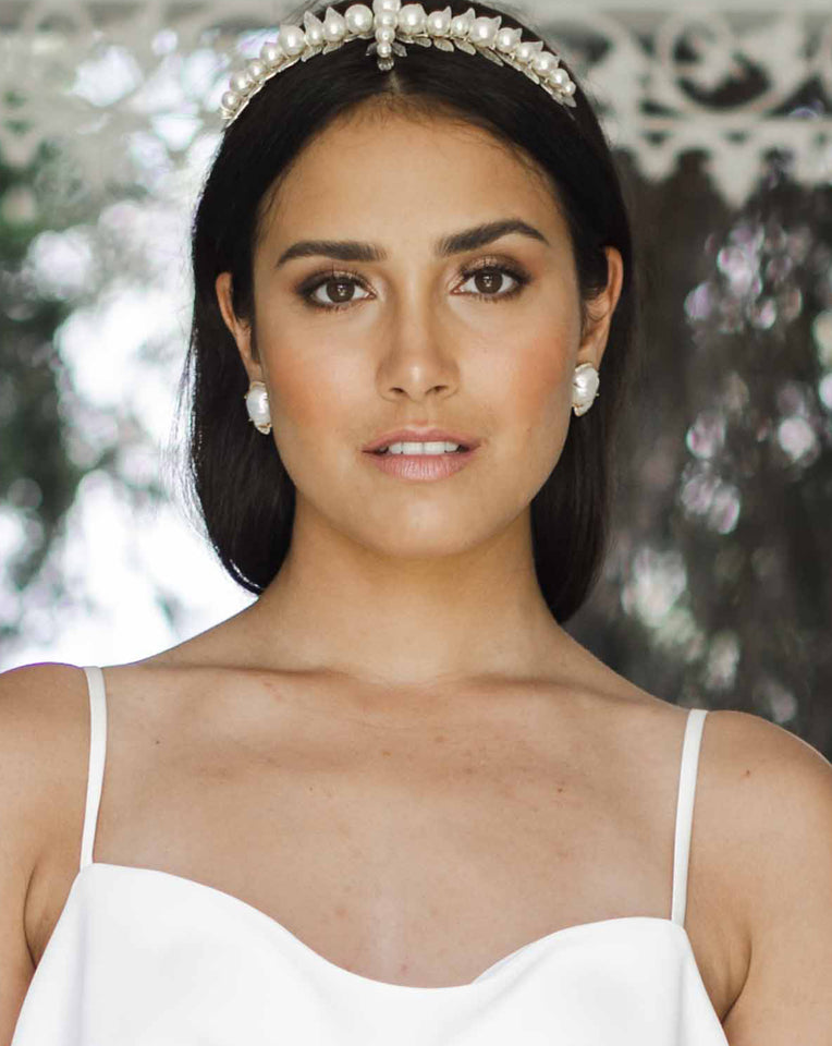 Bridal earrings - the baroque pearl studs are an elegant and stylish option for the modern bride. Beauty beholds the nature of these gorgeous pearls, no two the same and detailed with a fine crystal halo surround.