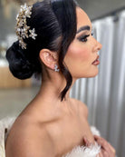 Wedding and bridal earrings - modern unique crystal studs, the Kitty earrings. These gorgeous studs, have a kind of ear cuff vibe without being an ear cuff.