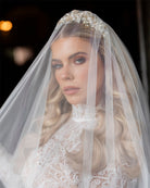 The Adonia is just beautiful worn with hair down or soft sweeping styles. The styling suits a full or slimline gown and can be worn in a cathedral as well a outdoors.