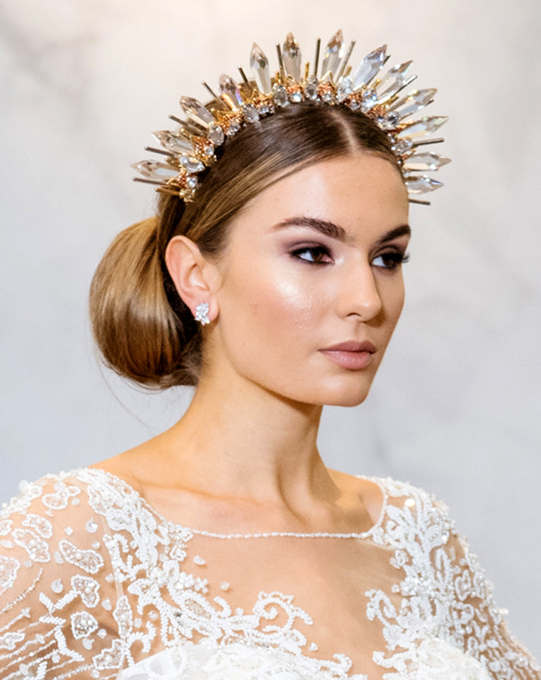 bridal headpiece - Showstopper crystal spike crown with rose gold and gold - Courtney by Kezani