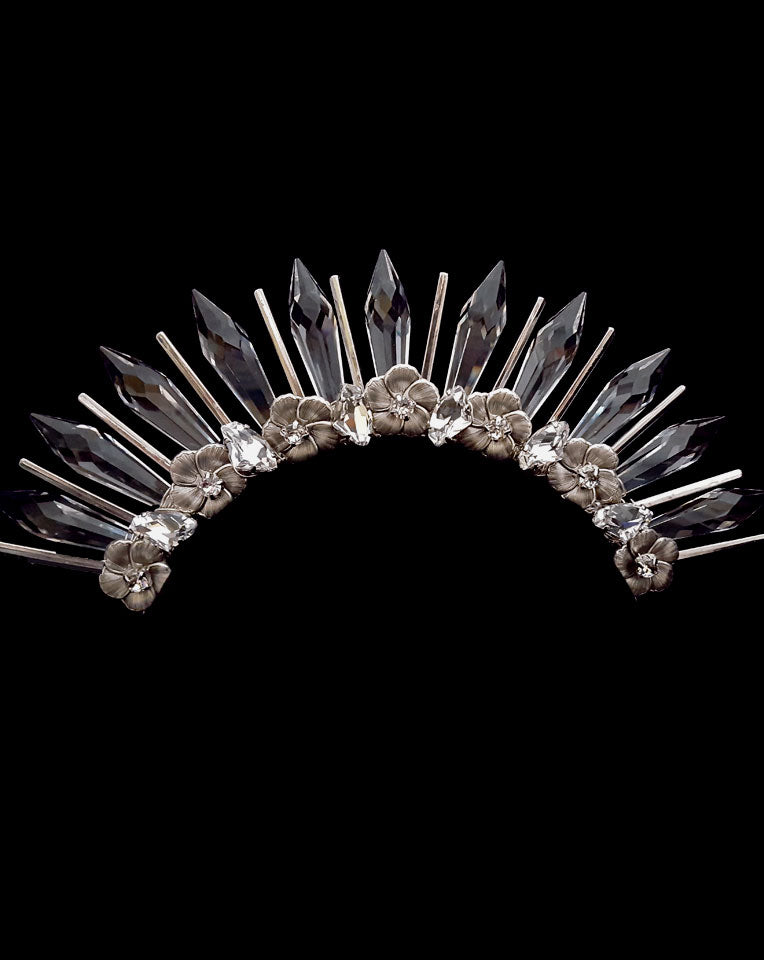 bridal headpiece - spike halo crown with flower detailing - The Met-acular by Kezani
