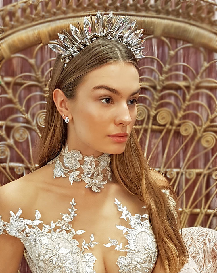 Bridal headpiece - The Met-acular is inspired by the amazing pieces that came out the religious theme from the Met Gala, New York. This spectacular piece has a magnificent sparkle and is a definite showpiece for the girl who loves making an entrance!!