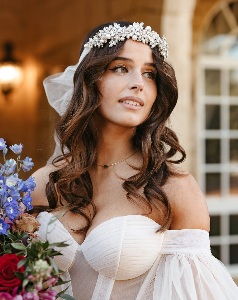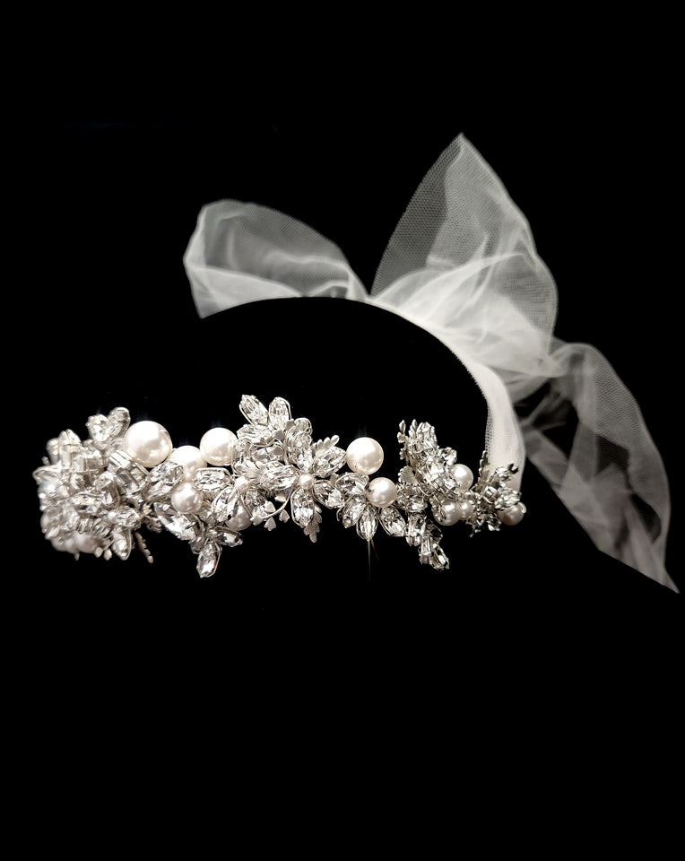wedding and bridal headpiece - embellished crystal garland band with tulle bow - Titania by Kezani - BUY or HIRE