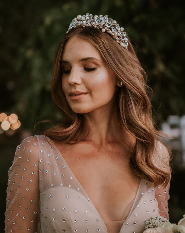 Wedding crown - dramatic crystal crown - Miranda by Kezani