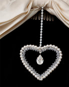 Wedding headpiece - bridal silk bow with crystal and pearl heart charm - The Charm Bow is a special and fun piece. A gorgeous silk hair bow with a crystal chain and handmade pearl and crystal heart charm with a beautiful pear crystal pendant.
