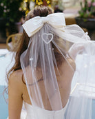 The bridal bow trend has certainly taken off for wedding 2024 and we wanted to do it a little differently. This is a fun and stunning silk wedding bow that can be worn with or without a veil.