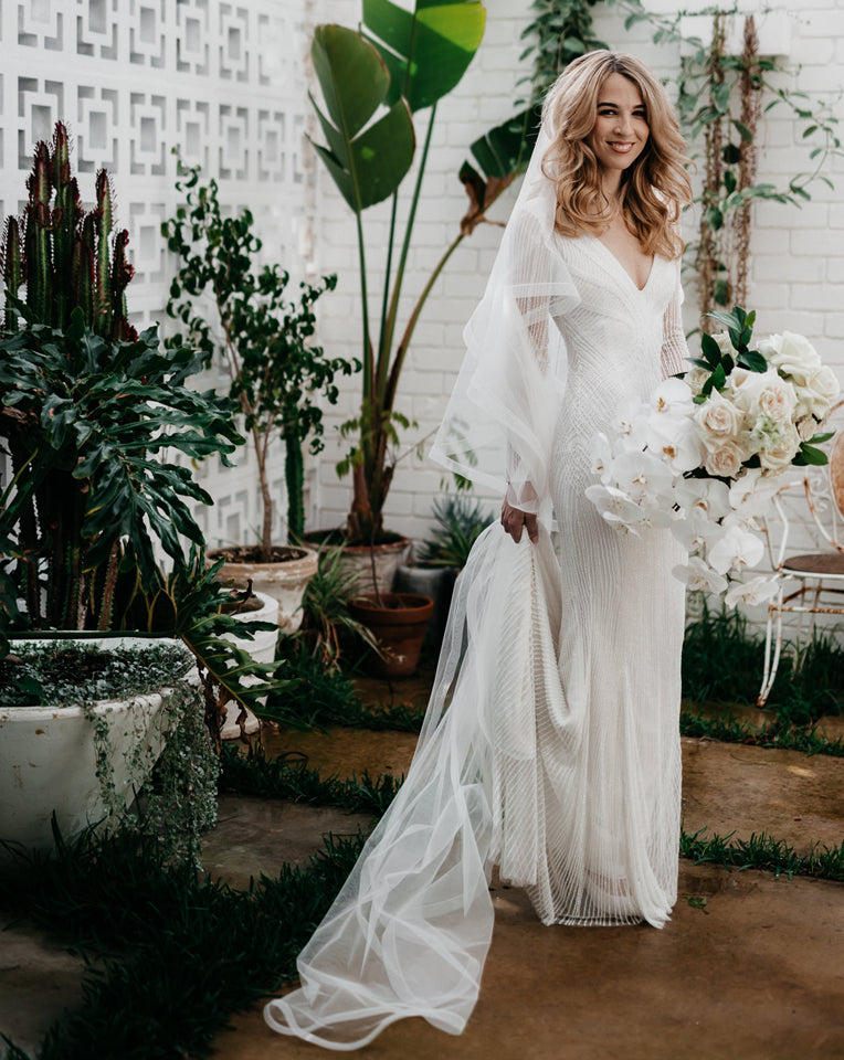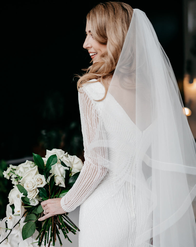 The Elizabeth trim gives body to this stunning veil. Great for a simple line gown or to add to a divine layered style gown with a crin edge.