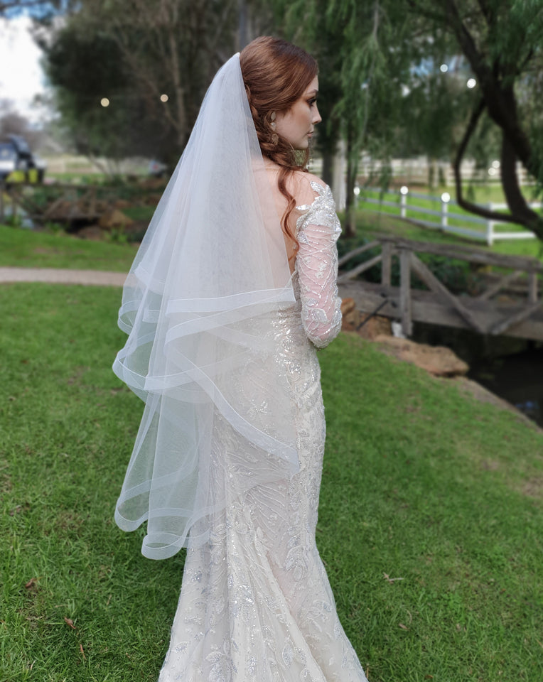 This veil can take 2 - 3 weeks to order if stock sells out. Rush orders may be possible with an email confirmation prior to purchasing. Please pop us a note to anita@kezani.com.au.
