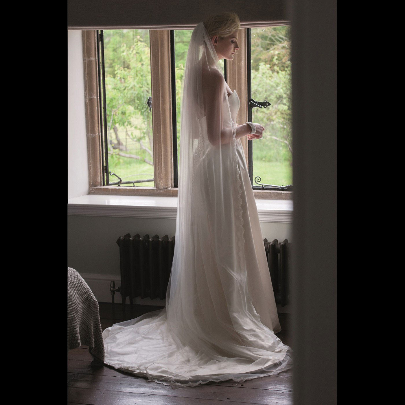 The vast majority of veils we stock are available in exclusive ivory Italian tulle and are handmade in different lengths depending on style and are available from shoulder length 54”/137cm up to Cathedral length 96”/245cm.