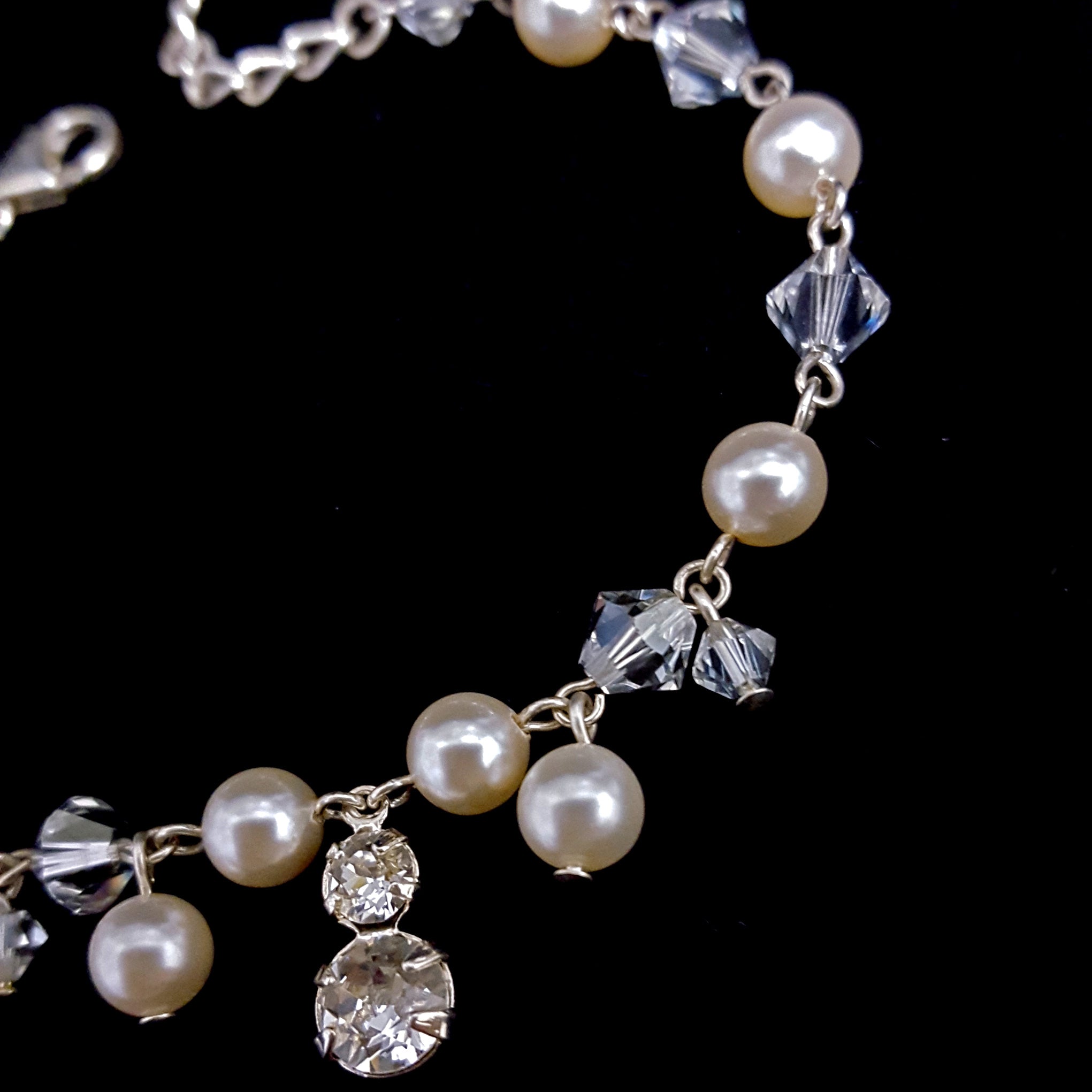 CONDITION: metal has darkened a little but the pearls and the crystals are the forefront of this bracelet.