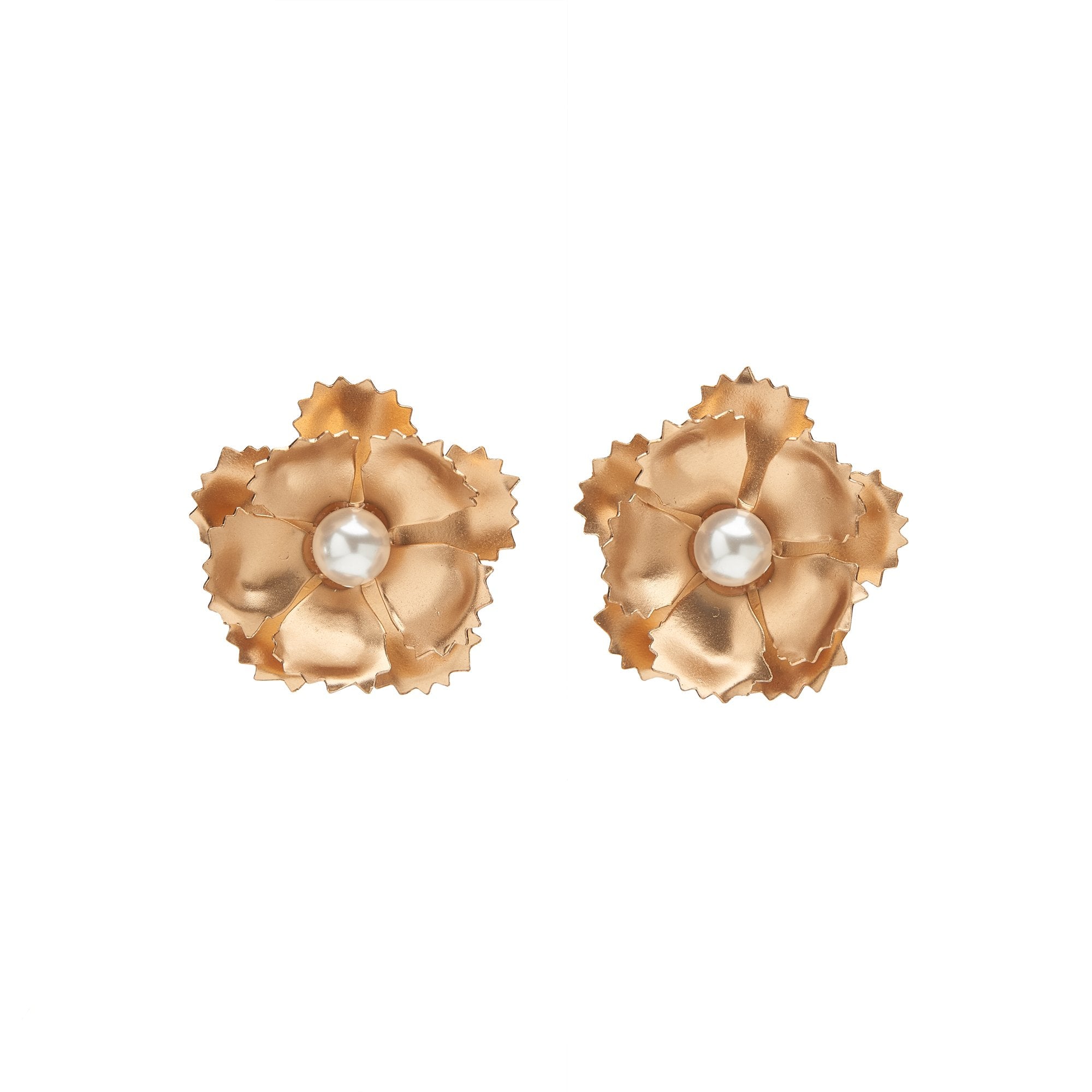 Bridal earrings - 3D gold petal flower - Chloe by Stephanie Browne