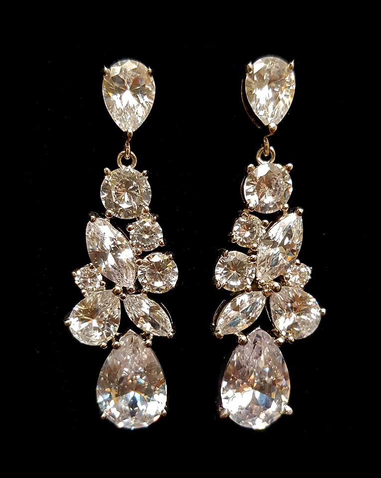 Bridal earrings - Regalia Madame is an inticate combination of marquees, pears and rounds with a fixed pear crystal drop.