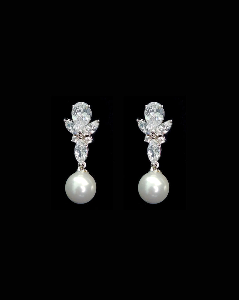 Bridal earrings - Timeless classic, crystal detailed stud and drop with a round pearl finish. This gorgeous style was named after 'Grace Kelly', a 50's movie star and who became the Princess of Monaco. Grace encompassed style and elegance.