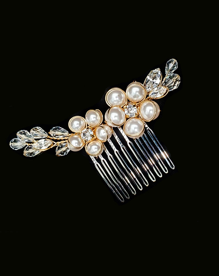 Gorgeous pearl flowers with a crystal branch either side adds a stunning effect to an updo or to glam up the side of your Hollywood wave hairstyle.