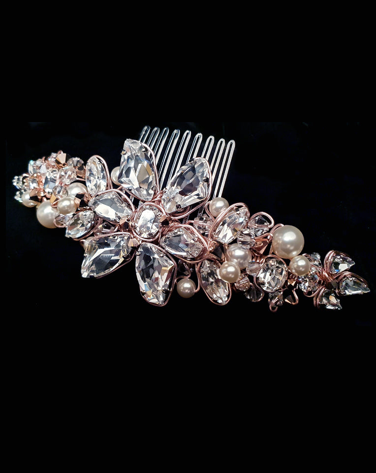 The Jess comb is a beauty and will really sparkle your day/night away. It can be be created in silver plate, gold plate or rose gold plate wire.