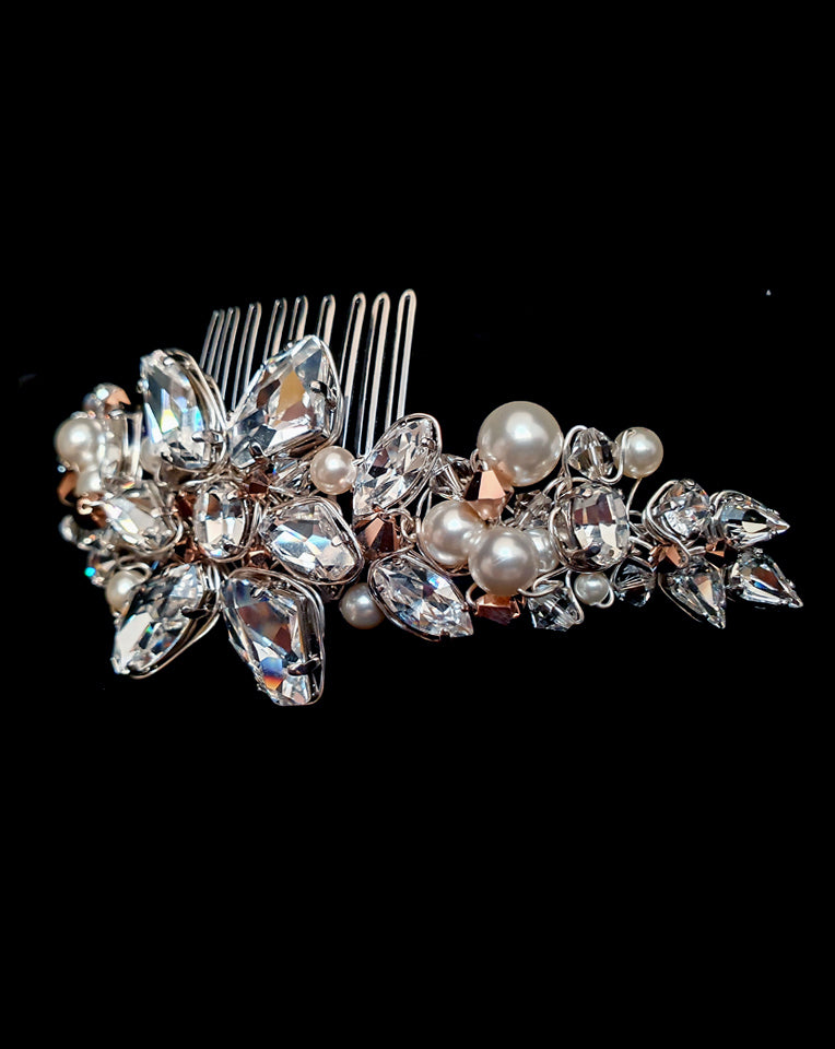 Bridal Headpiece - the Jess crystal side comb is for that glamorous gal with a gorgeous Hollywood wave. This stunner comb is created with lovely galactic crystals and a few large pearls wound into a gorgeous headpiece.
