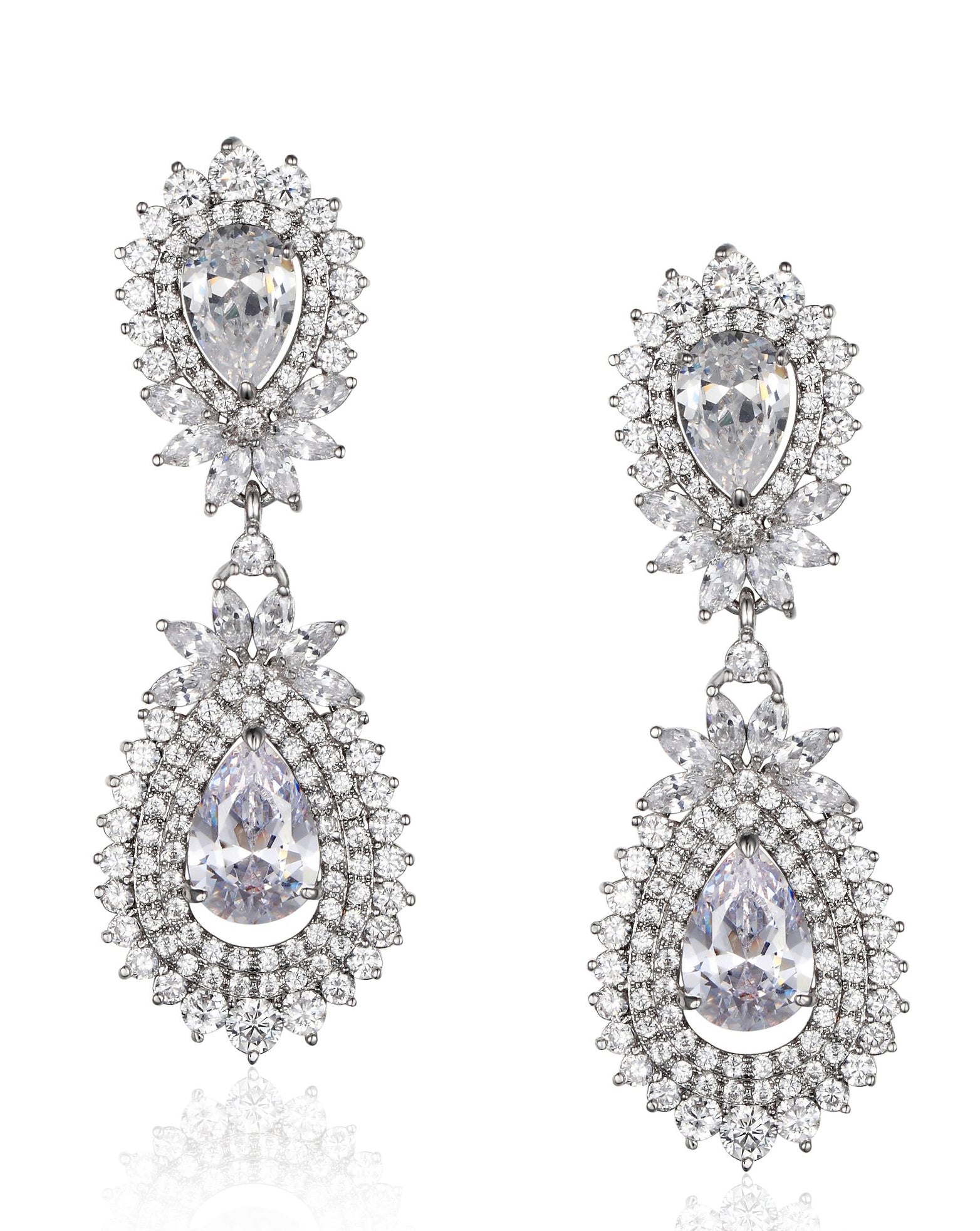 Bridal and wedding earrings - these are beauties!!! A gorgeously detailed pear shape drop earrings. Fine crystals halo these pear drops and lovely navette detailing.