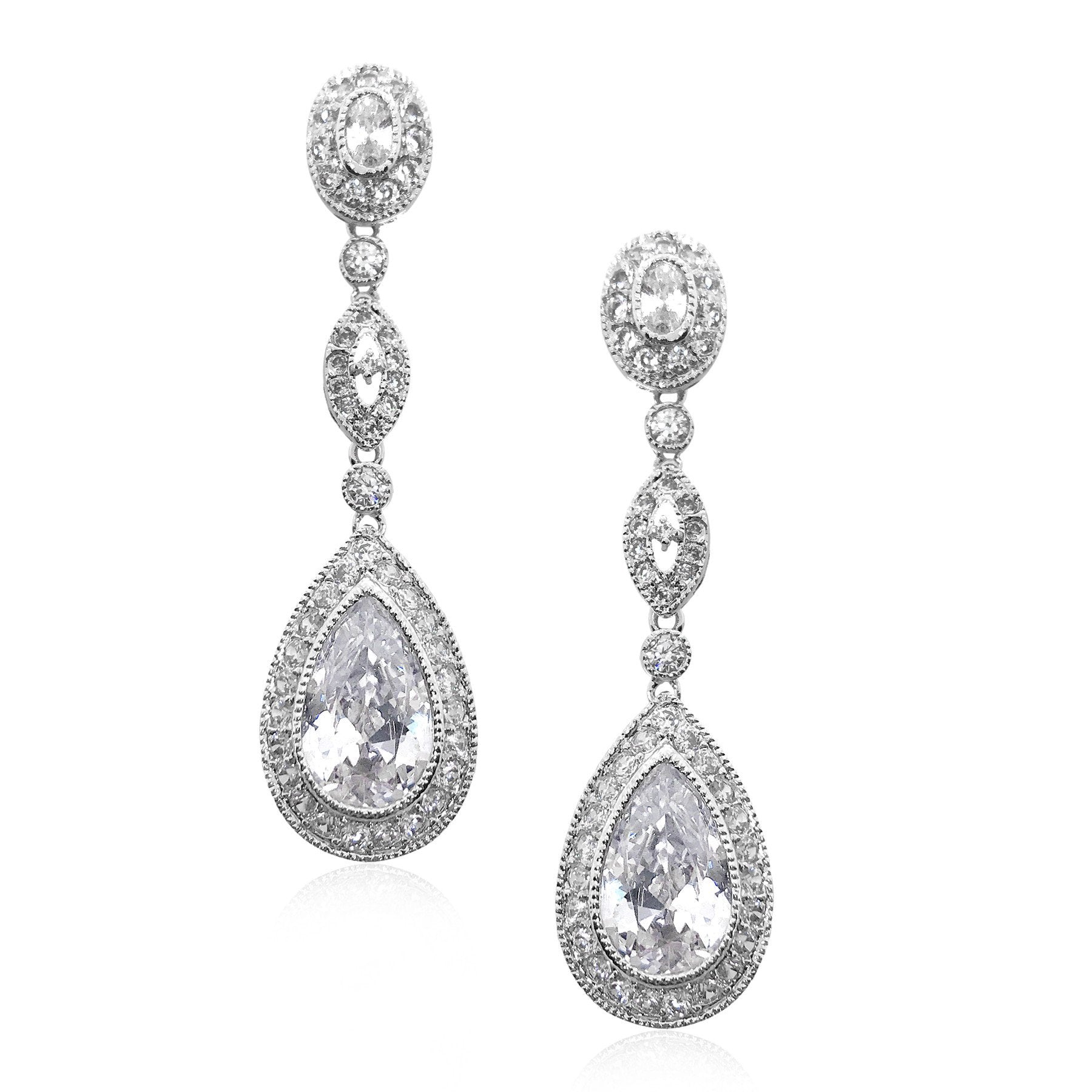 Bridal and wedding earrings - Vintage classics with subtle fine crystal detailing in a trio link style, finishing with a pear drop.