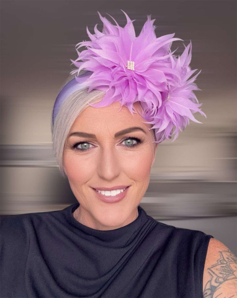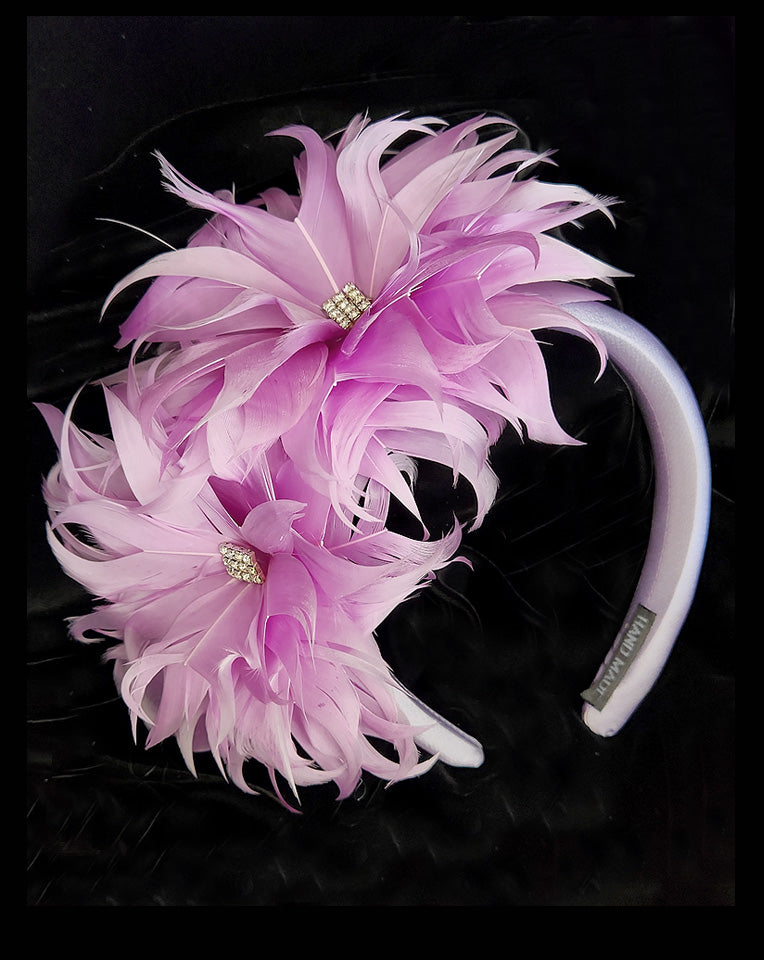 Race day crown and fascinators - lavender double feather flower headband - Evie at Kezani