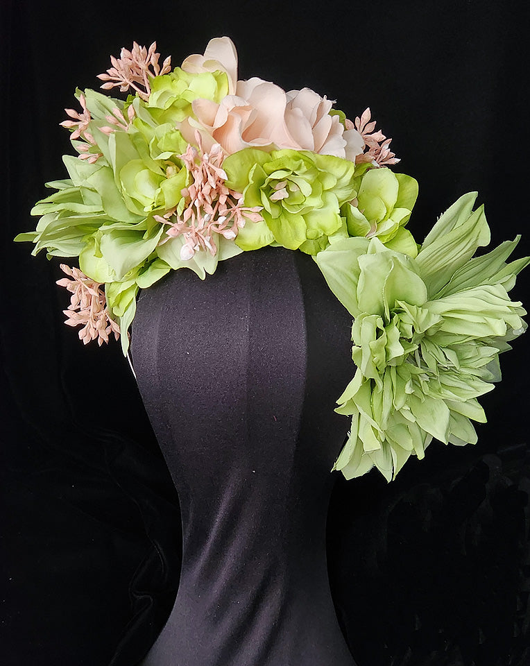 Race day Fascinator - green blush mix with detachable dahlia headband - Enchantment at Kezani