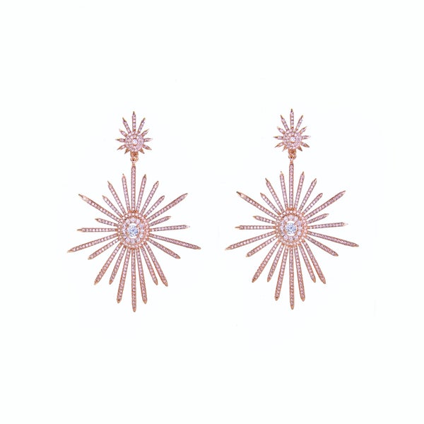 Bridal earrings - mega babe earrings, these are the star of the show!!! These statement earrings are delightful. Large but not heavy. This gorgeous detailing is created by fine sprays embellished with tiny diamond cut cz stones.