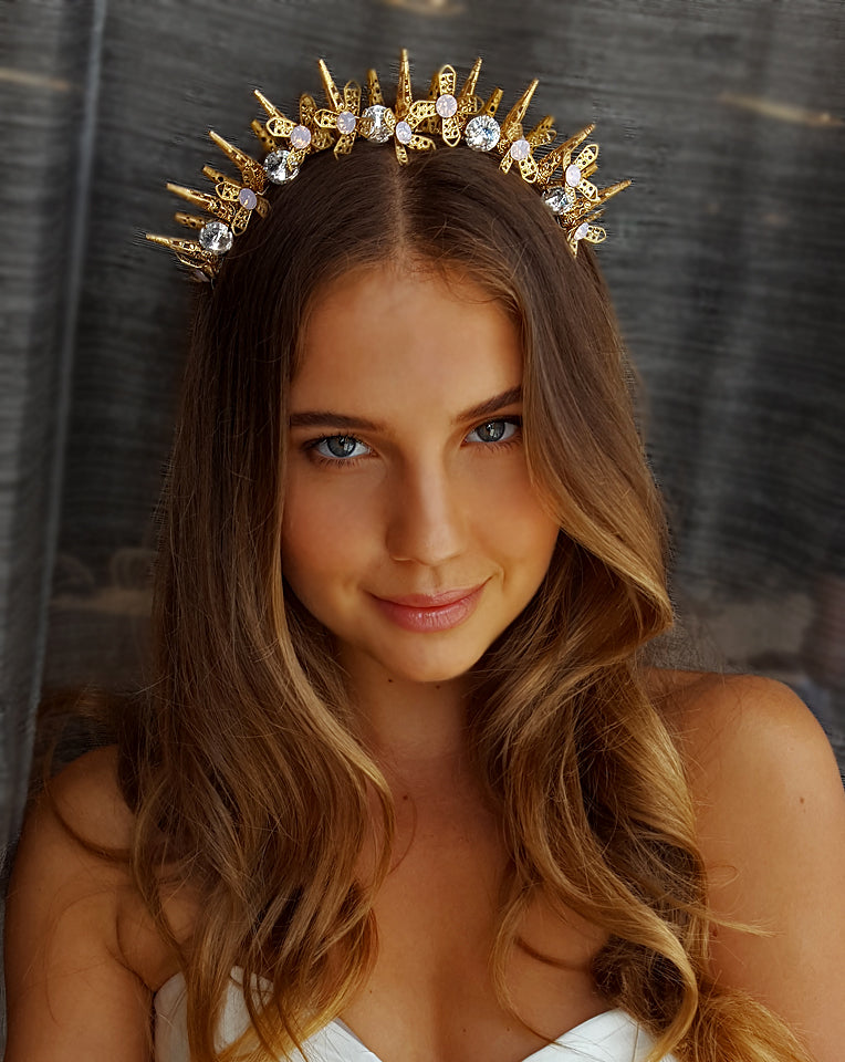 wedding headpiece - unique spikey gold crown - Venetia by Kezani