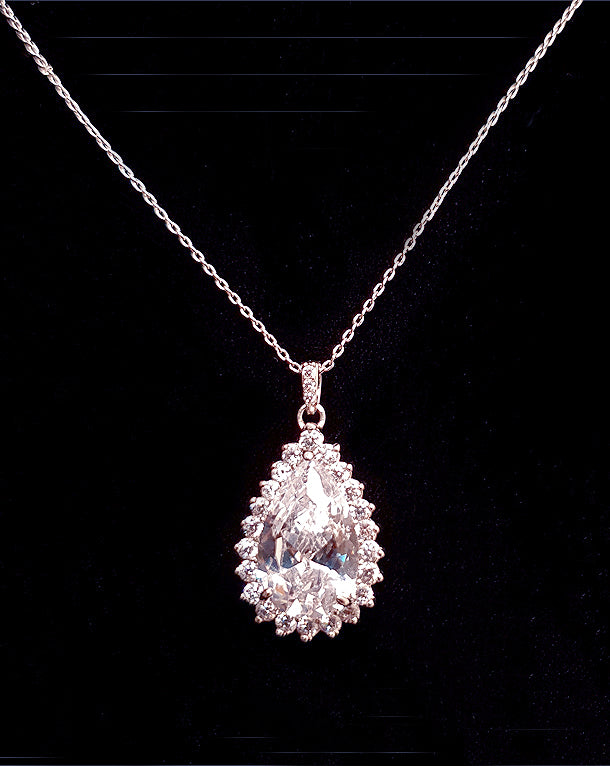 Wedding necklace - Pear crystal pendant with crystal halo - Dianna - Johnny B collection at Kezani