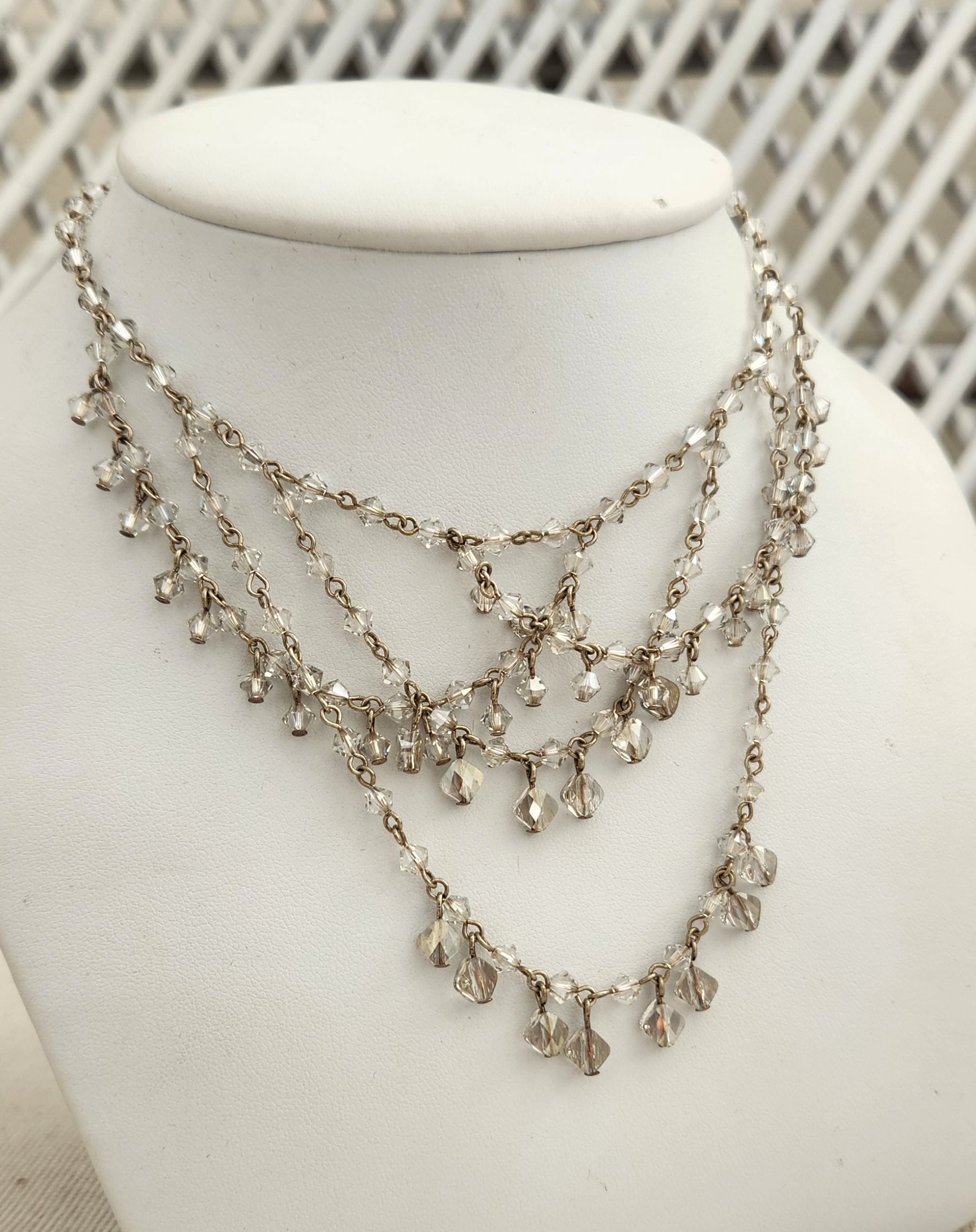 Wedding necklaces - delicate vintage silver crystal drapes - Candiece by Kezani
