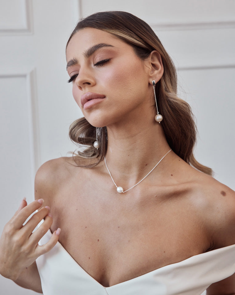 Wedding Necklaces - timeless freshwater pearl pendant, the Clara Necklace. A modern and clean classic that will suit an elegant strapless or off shoulder gown.