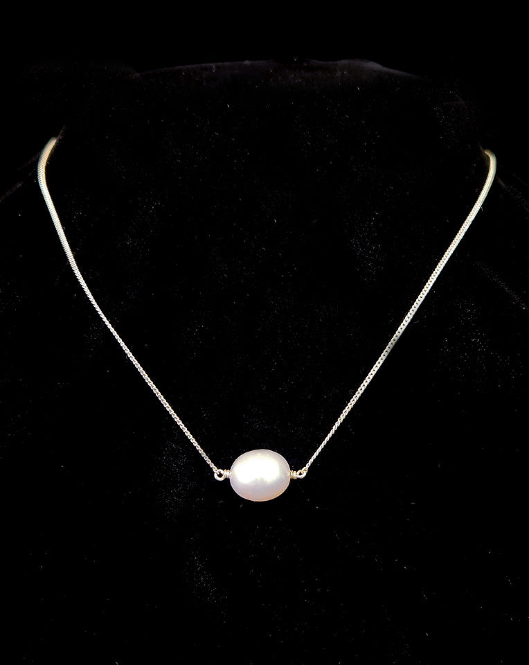 This beautiful oval pearl is connected to a fine chain and has an adjustable chain that can be worn from 40-45cm.