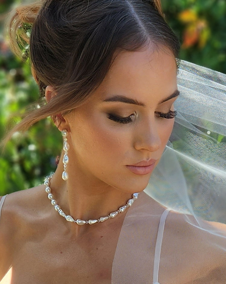 Wedding necklaces - baroque pearl classic strand with crystal - Nikola by Kezani